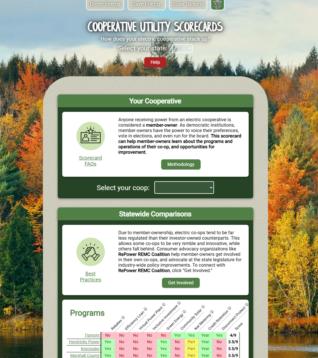 This tool provides independent scorecards evaluating electric cooperatives across Indiana on issues such as clean energy adoption, transparency, and member engagement.